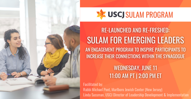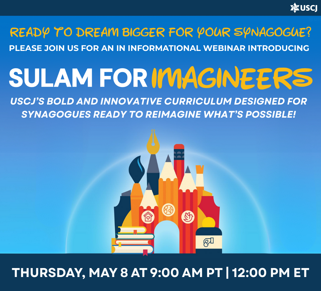 Join us for an in Informational Webinar introducing Sulam for Imagineers — USCJ’s bold and innovative curriculum designed for synagogues ready to reimagine what’s possible. Ben Vorspan and Rabbi Dr. J. B. Sacks from Congregation Beth Shalom (Palm Desert, CA) will share their experiences from the first cohort.